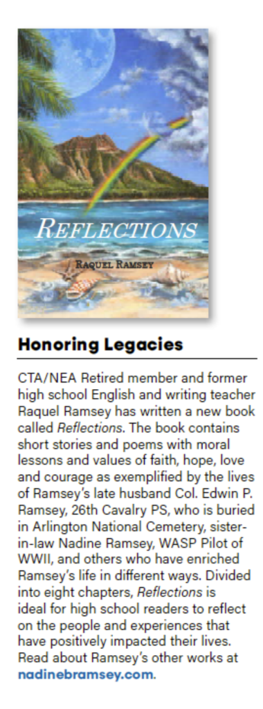 An outline of Dr. Ramsey’s book Reflections appeared in a recent issue of California Educator magazine.